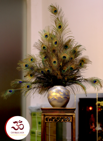 - Bình lông chim công đặt trong phòng làm việc tạo ra sự uy nghi, sang trọng và mang lại vượng khí cho công danh sự nghiệp.